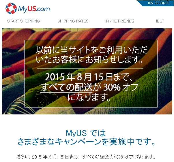 MYUSが2015年8月15日まで、すべての配送30%オフ