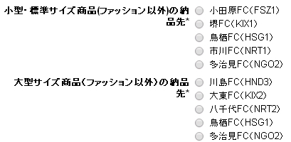 チャーター便での納品等の理由により、 都度異なるFCへ納品することが難しい場合は、 FCを固定できます。 固定を先に依頼頂いても納品先FCの指定方法が変更されるまでは 従来の納品先(発送元住所の最寄りのFC)が表示されます。 今後FCの固定には手数料が発生する予定です。 手数料については、詳細が決まり次第お知らせいたします。