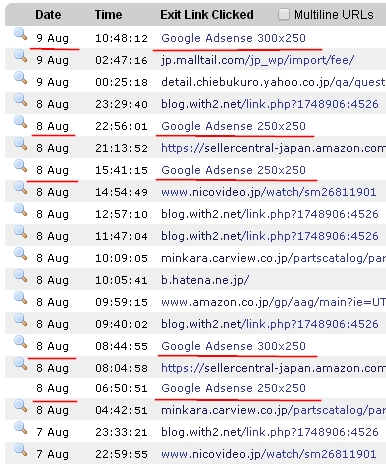 アドセンス広告がクリックされているという結果が映されていました。